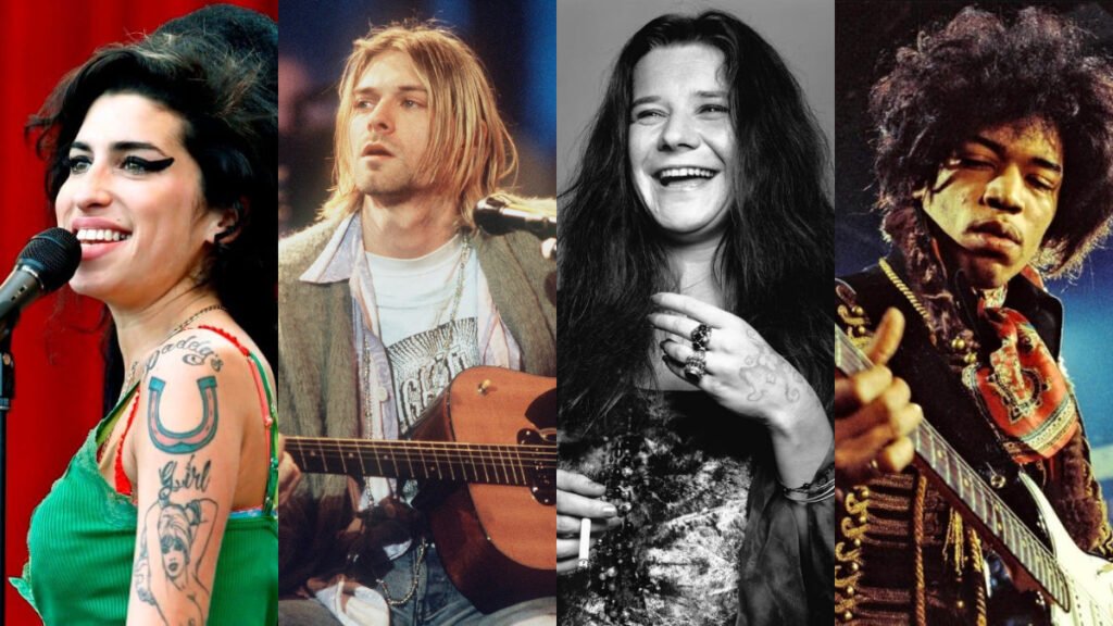 Décadas depois, em 1994, o suicídio de Kurt Cobain consolidou a mística. Segundo a biografia Heavier Than Heaven, a mãe de Cobain teria dito: “Agora ele se foi e se juntou àquele clube estúpido. Eu disse para ele não se juntar a esse clube estúpido”. O ingresso mais recente e impactante foi Amy Winehouse, em 2011, cuja batalha pública contra a dependência química deu um rosto moderno à velha tragédia.